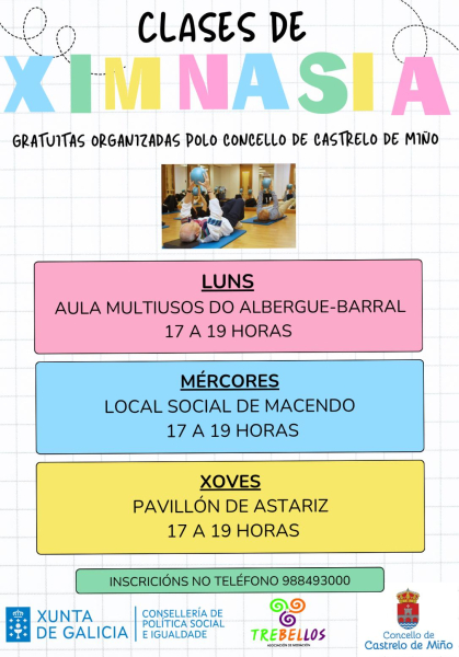 Clases de ximnasia gratuitas organizadas polo Concello, inscrición no teléfono 988 493 000